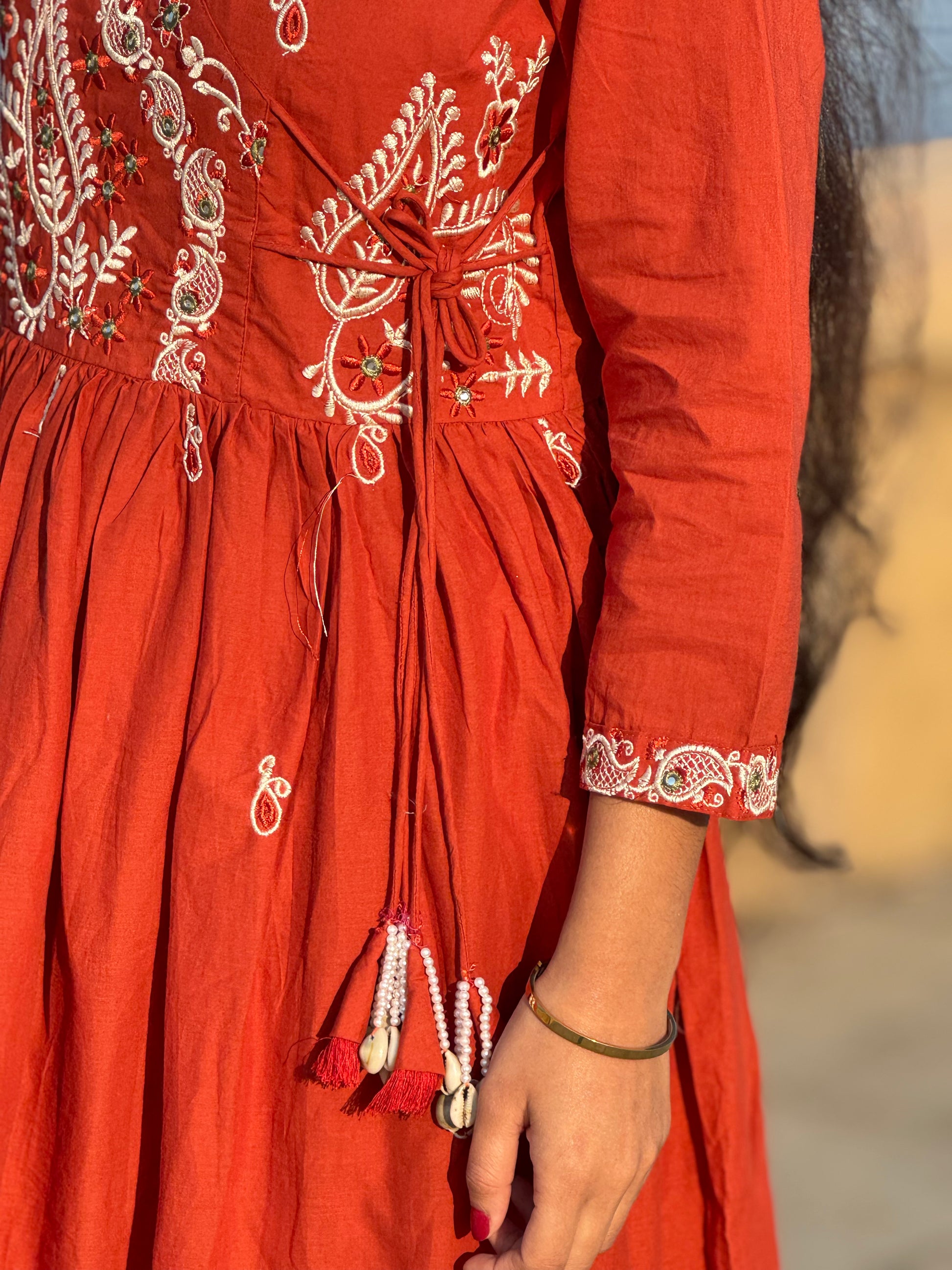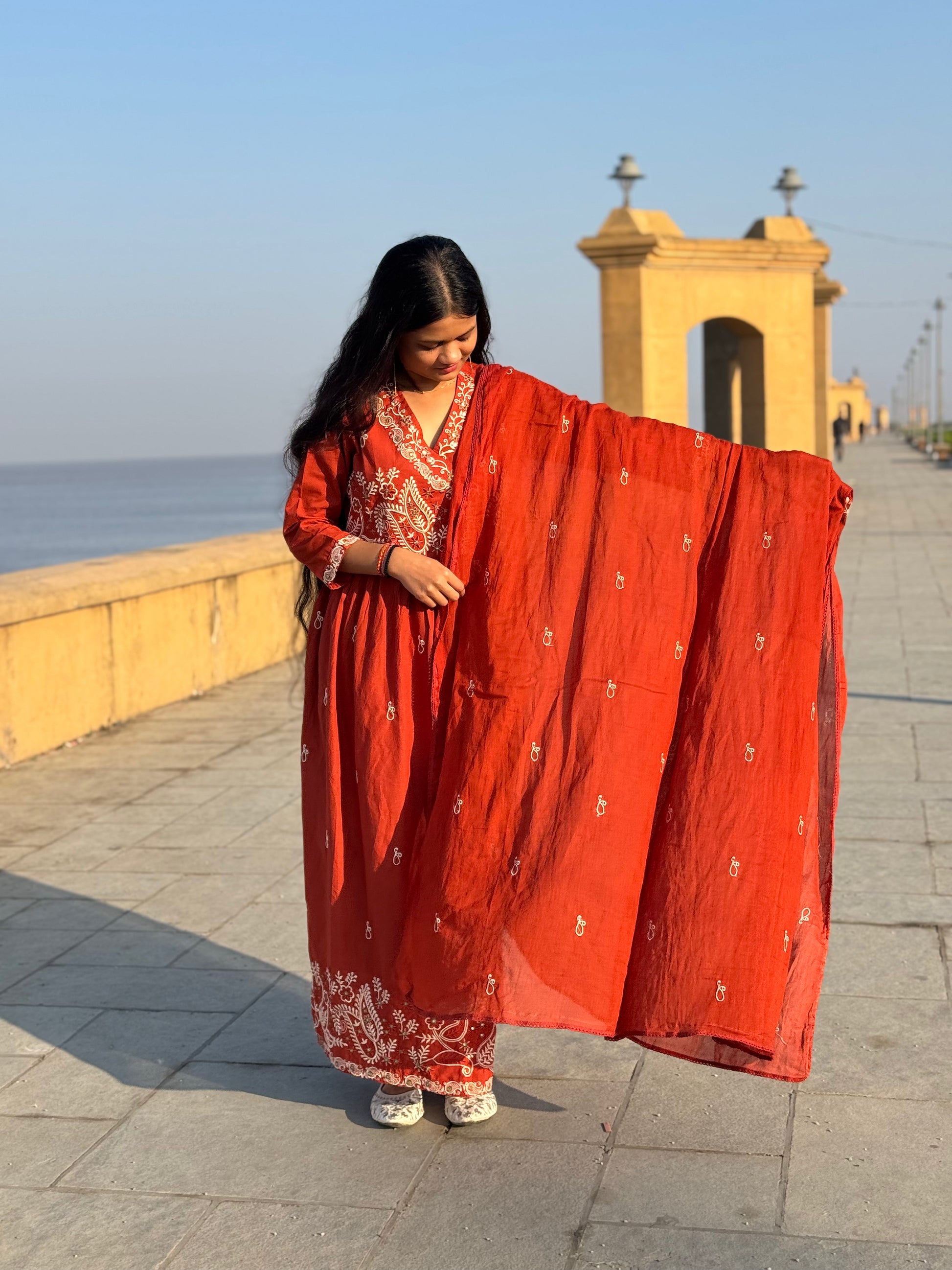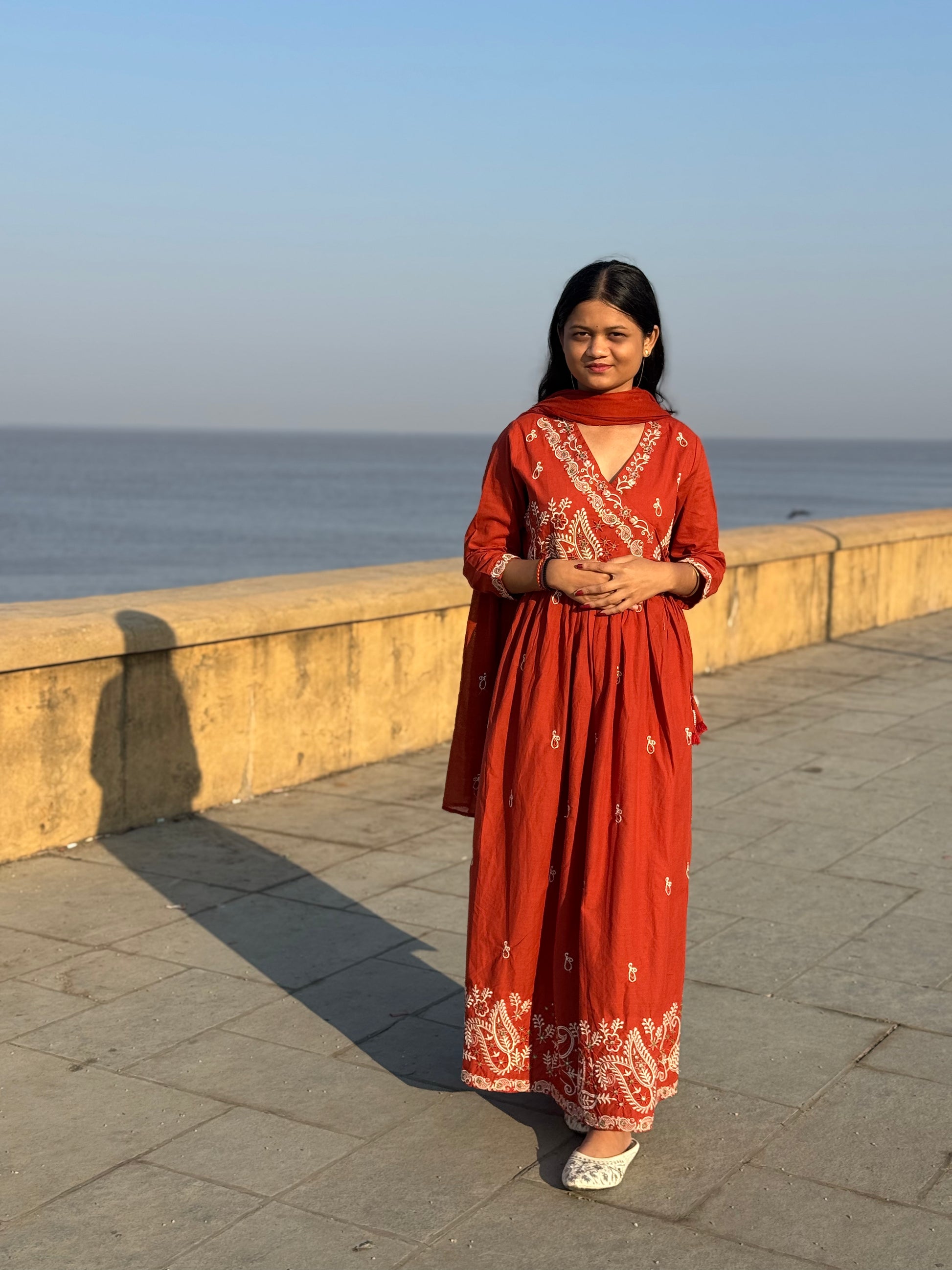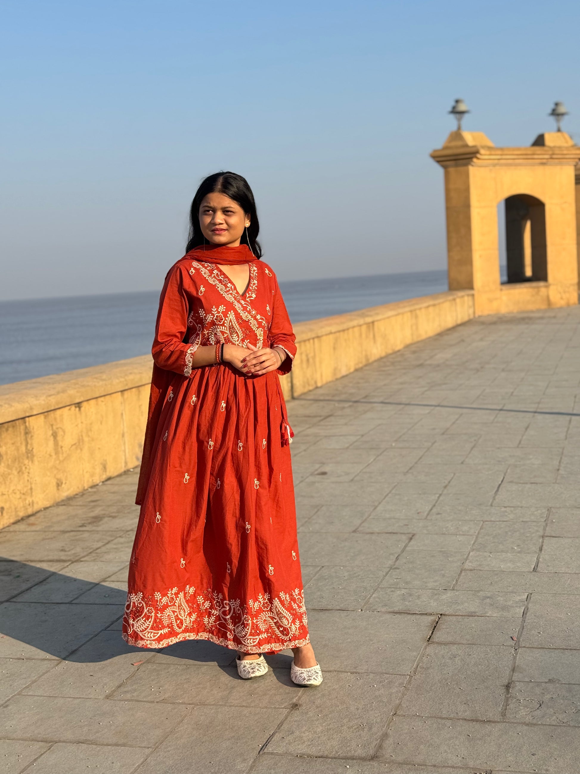 Latest Embroidery Work Cotton Semi-Party Wear Anarkali Suit.