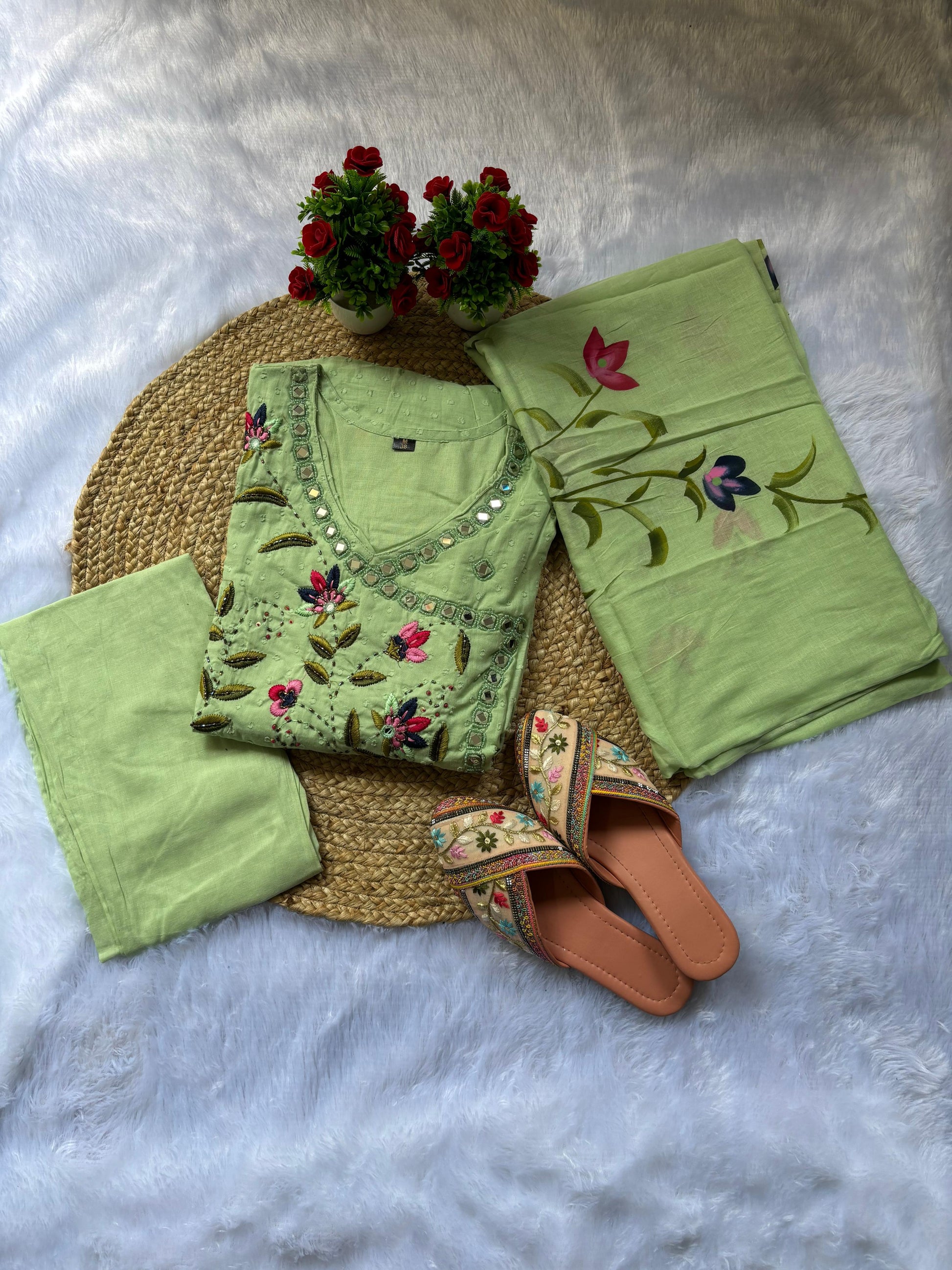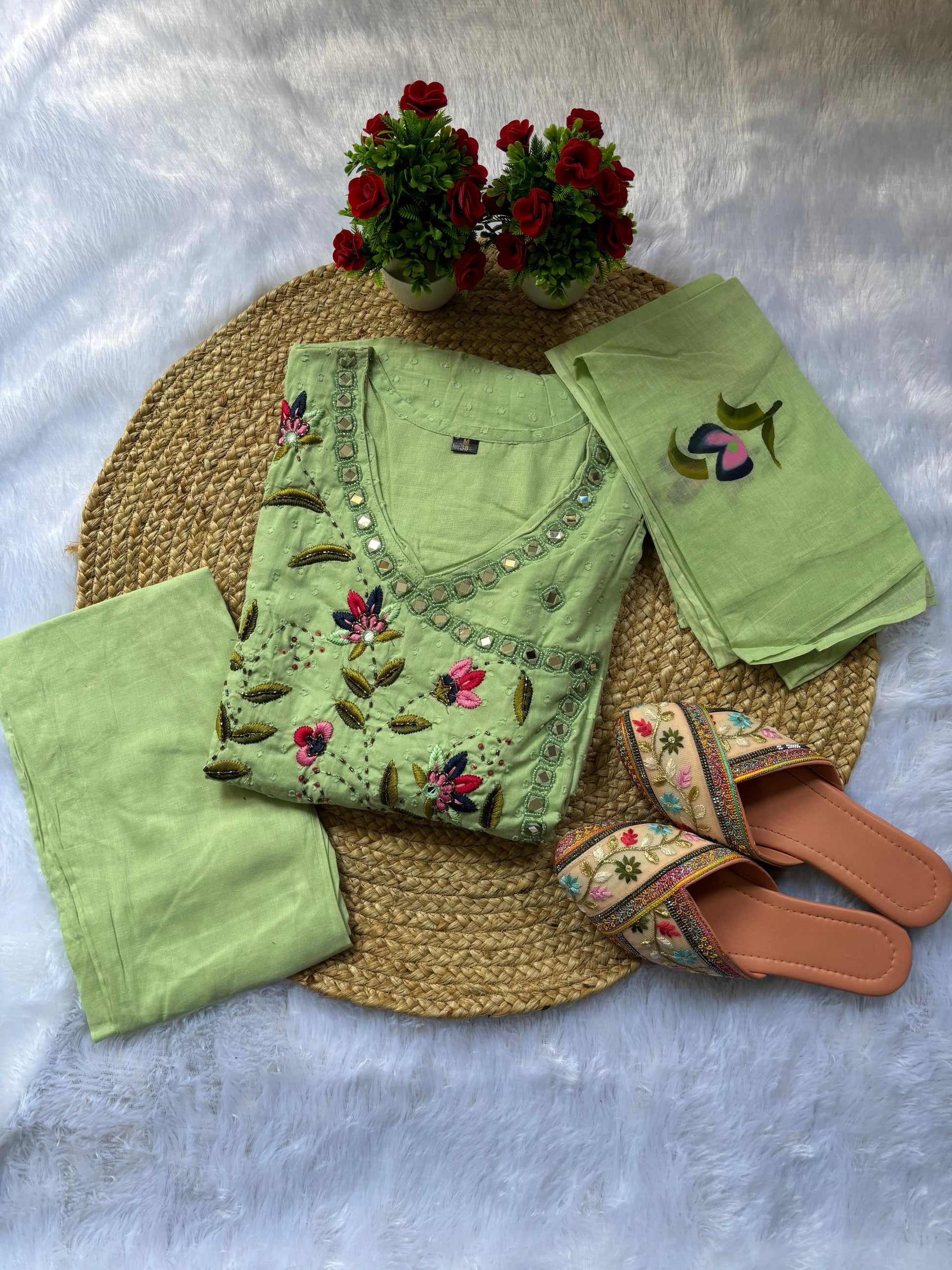 Pure Handwork Mul Cotton Designer Anarkali Suit